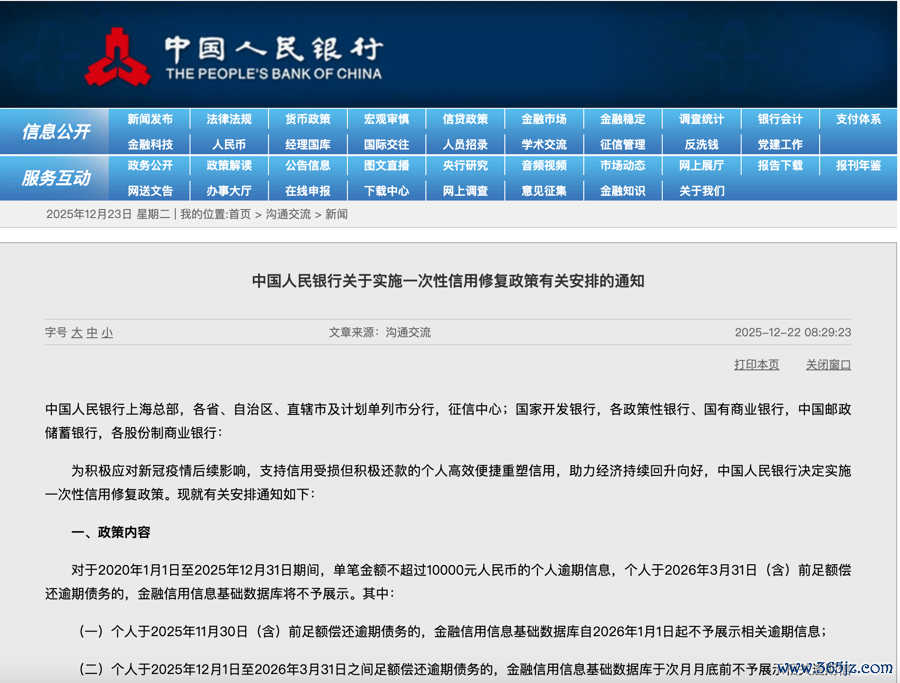 2025年12月22日,中国东谈主民银行发布一次性信用建筑战术,秘书自2026年1月1日起,对特定历史期间的个东谈主小额落伍纪录试验有要求、一次性的信用建筑。